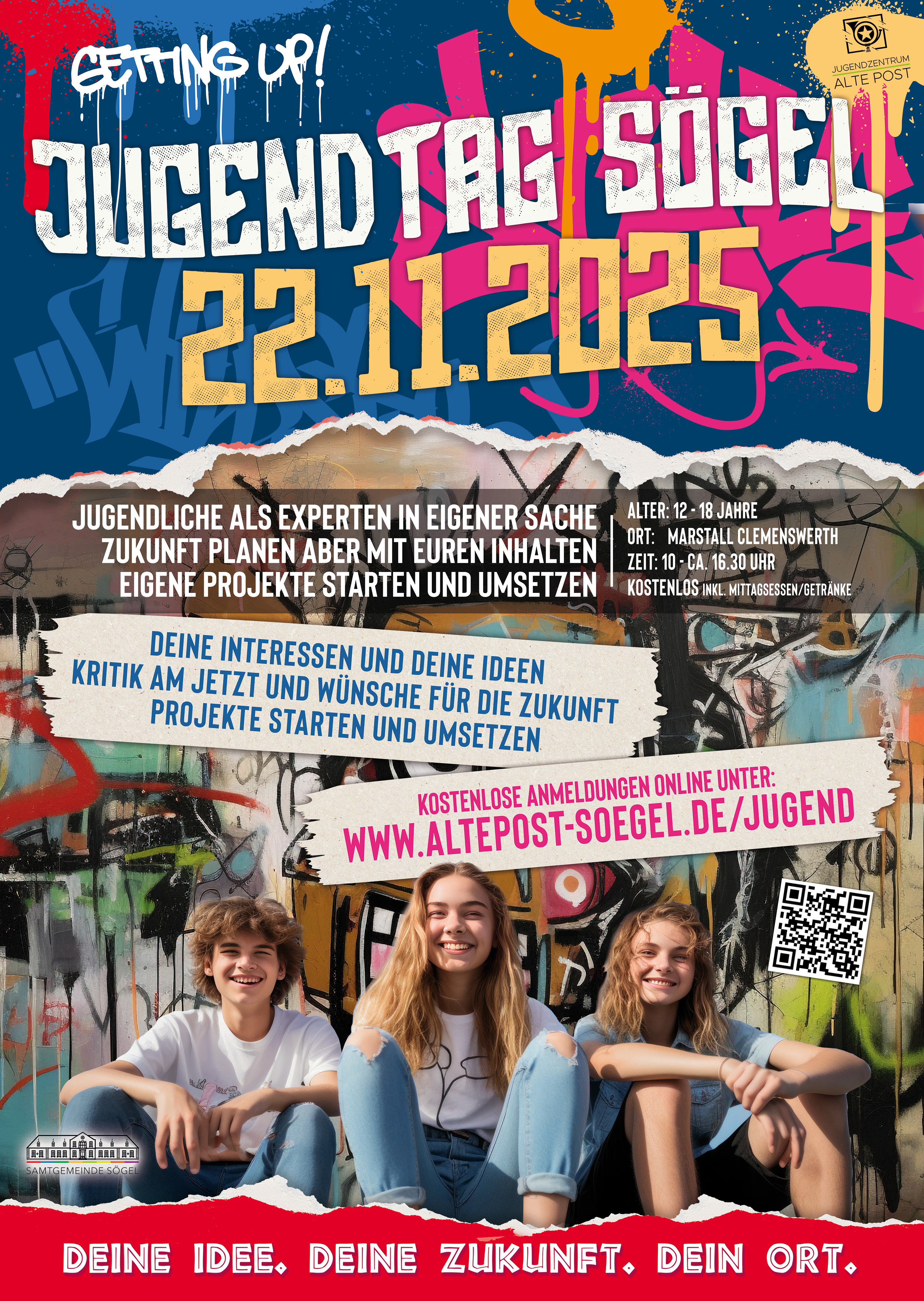 Die Gemeinde und Samtgemeinde Sögel mit Verwaltung, Politik und Jugendarbeit möchte mit Euch planen und dafür brauchen wir letztendlich natürlich Eure Beteiligung und Meinung.